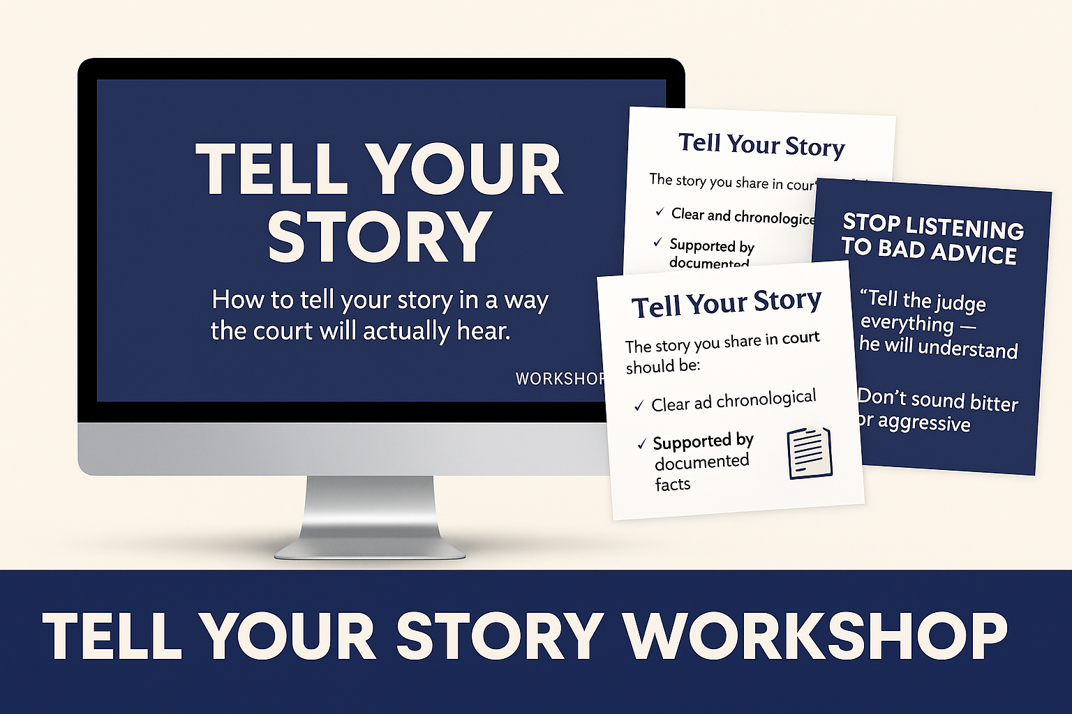 AÂ COURSE THAT TEACHES YOU HOW TO TELL YOUR STORY SO THE LAWYERS, MINOR'S COUNSEL, EVALUATORS AND THE COURT WILL ACTUALLY HEAR YOU.